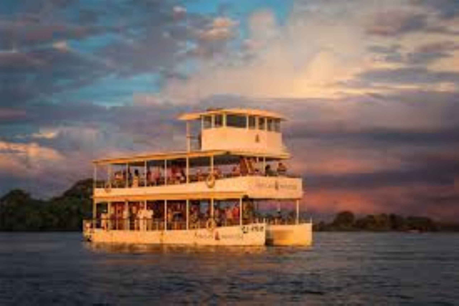 Stell dir das vor: ein ruhiger Abend auf dem Sambesi, die goldene Sonne geht hinter dem Horizont unter, während du sanft auf einer Bootsfahrt dahin gleitest.