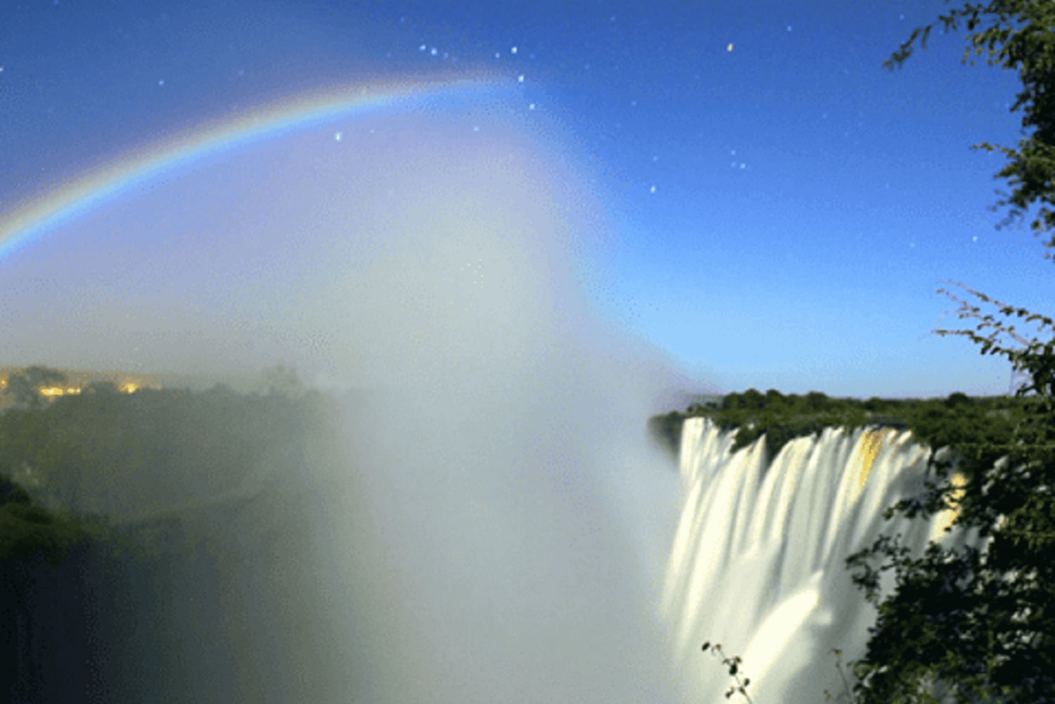 - Spüre den Nebel der Victoriafälle, während du das seltene Mondbogenphänomen beobachtest