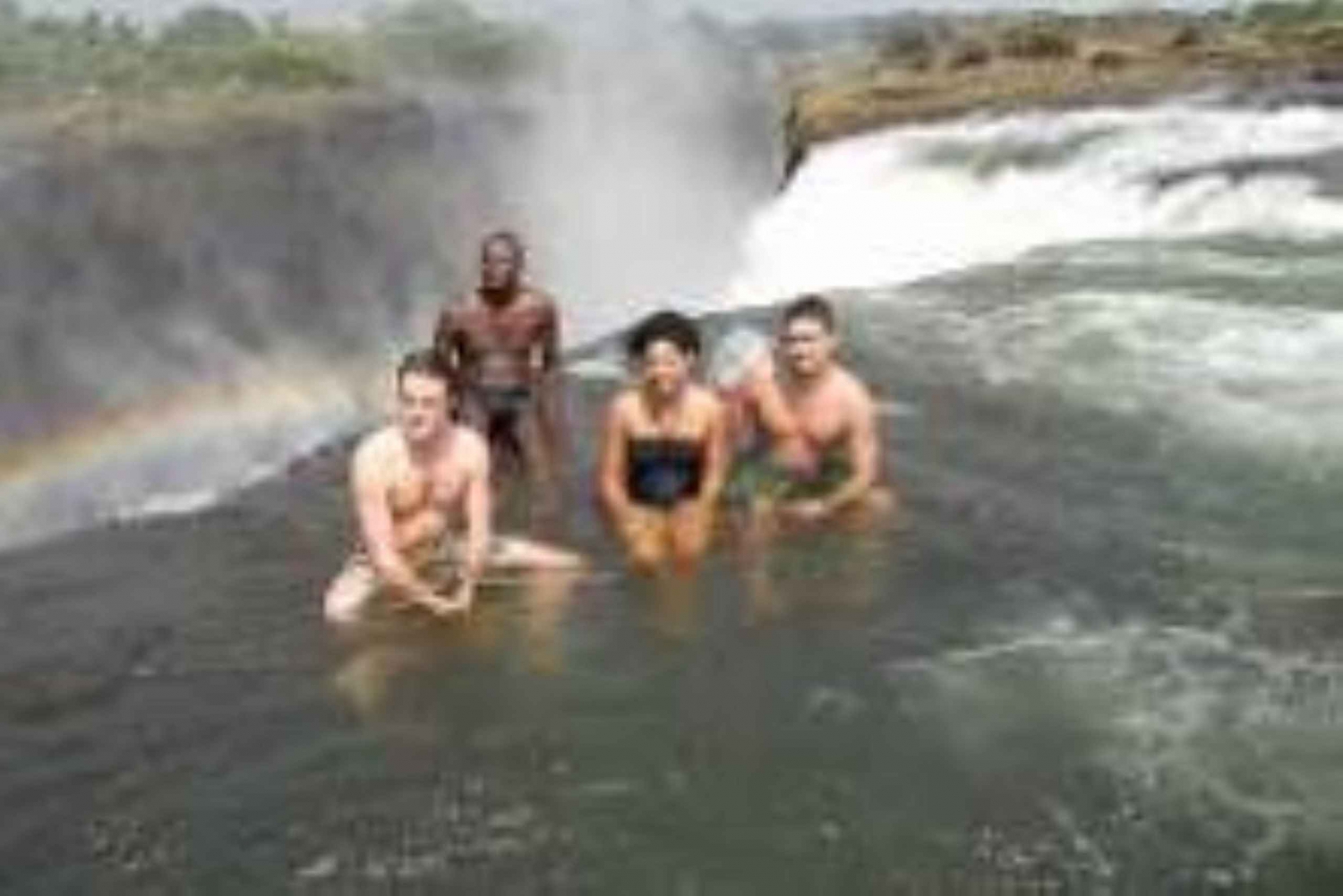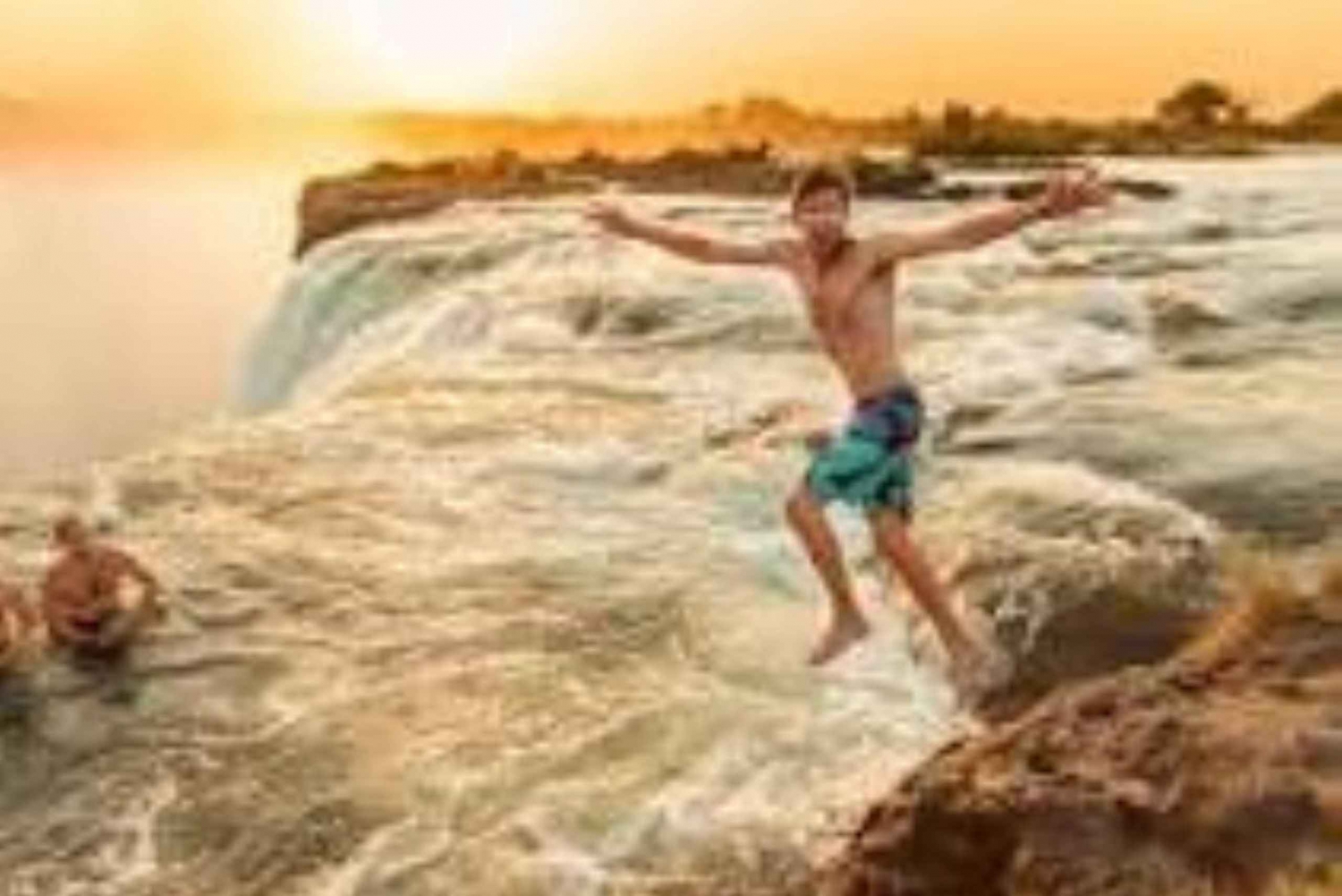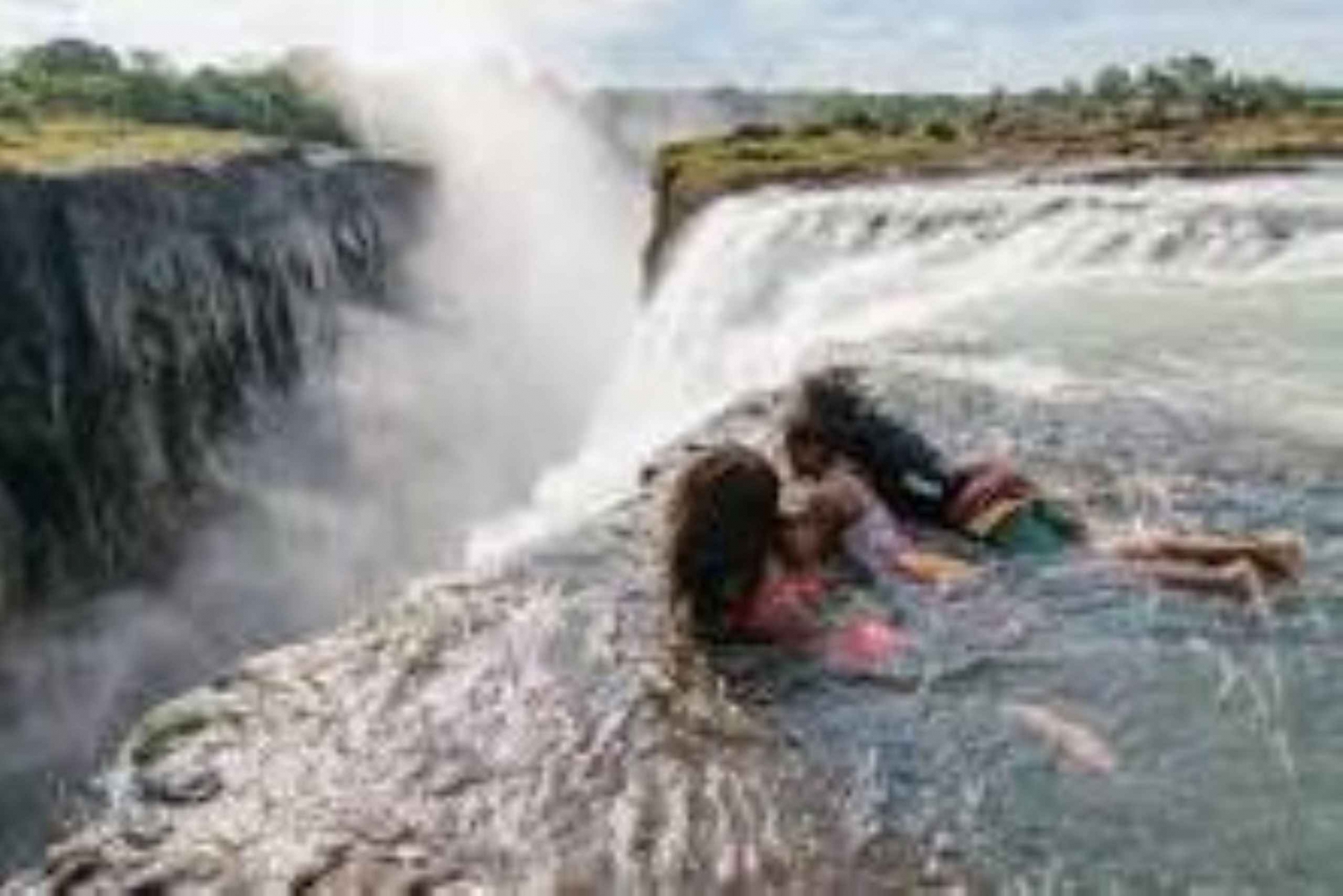 Devils Pool, located at the top of Victoria Falls in Zambia, is a natural rock pool that allows brave swimmers to relax just inches away from the edge of one of the largest waterfalls in the world. During the dry season, when water levels are lower, adrenaline junkies can take a dip in this thrilling infinity pool while enjoying unparalleled views of the cascading waters below. The experience is not for the faint of heart, as strong currents and slippery rocks make it a dangerous endeavor. However, for those seeking an unforgettable adventure and a unique photo op, Devils Pool offers an exhilarating opportunity to connect with nature in a truly breathtaking setting. Just be sure to heed the guides' advice and enter with caution – after all, safety first!