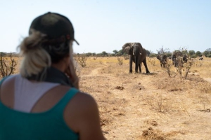 Un autre véhicule de visiteurs est arrivé derrière nous. Nous avions passé du temps avec les lionnes et c'était juste de passer le relais aux nouveaux arrivants. Alors que les deux véhicules de notre groupe s'éloignaient, un véhicule de safari plein de touristes brûlés par le soleil, fatigués, arrivait vers nous. Apparemment, la nouvelle de l'emplacement des lions léthargiques s'était répandue. Nous étions dans la région de Robins, ayant fait une halte au camp pour un déjeuner rapide, repérer des écureuils et un peu de WIFI. Je dois avouer, à ce moment-là j'ai pensé 'oh oui, c'est parti, un autre véhicule et je me demande combien d'autres nous allons croiser; j'ai aussi pensé, 'si nous avons vu des lions dans nos premières 30 minutes, Hwange va être prolifique en observations.'