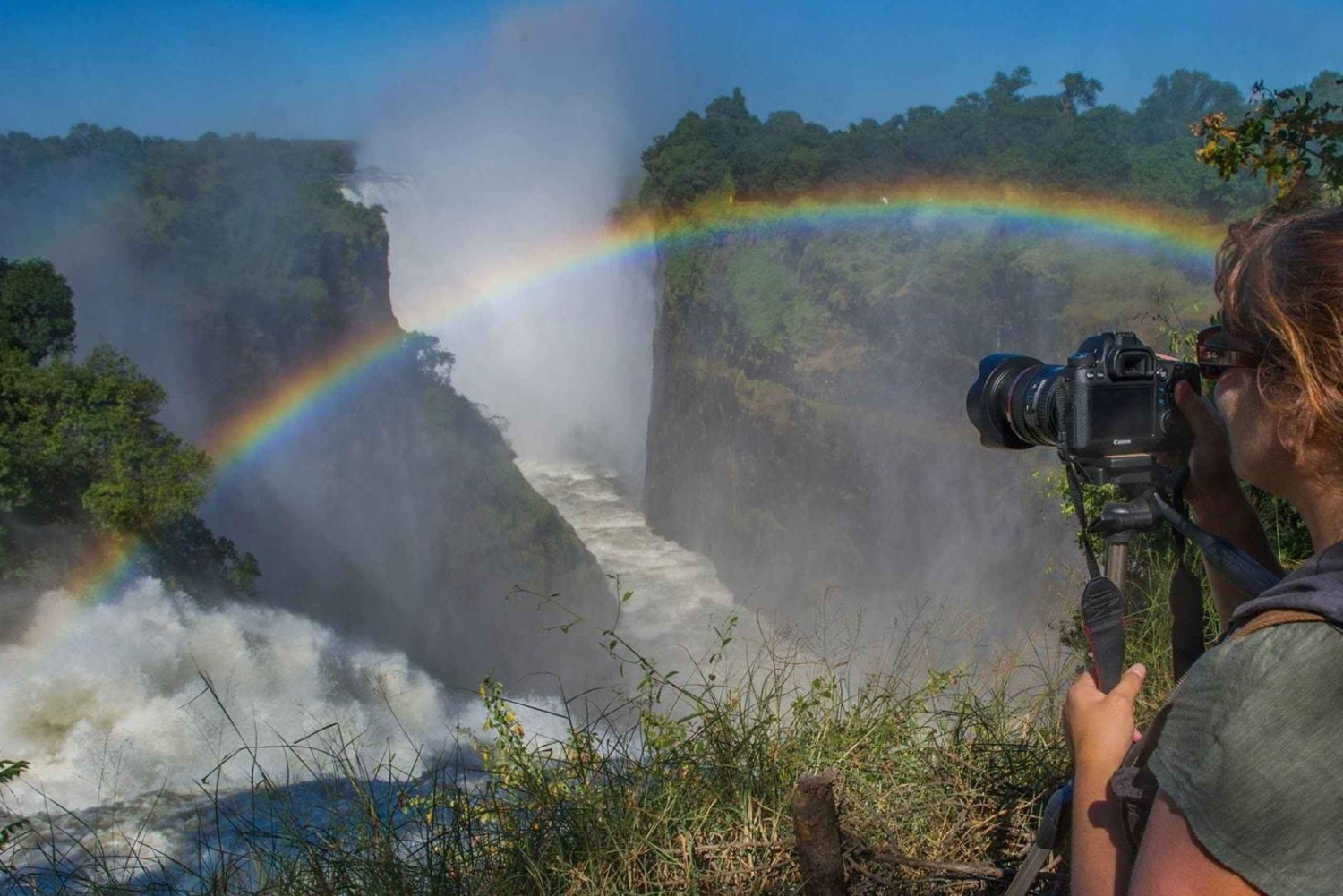 Participez à une visite en petit groupe de 2 heures pour photographier l'une des sept merveilles du monde. Avec l'aide de votre guide photographe expérimenté, capturez ce paysage unique en regardant le soleil se lever sur les chutes Victoria. Approchez-vous de la plus grande chute d'eau du monde et admirez l'arc-en-ciel presque permanent créé par les embruns. Votre guide photographe privé vous fera part de toutes les astuces et techniques qu'il a apprises au fil des ans pour prendre des photos dans ces conditions uniques. L'excursion est limitée à un maximum de 10 personnes afin que le photographe puisse travailler en étroite collaboration avec vous.