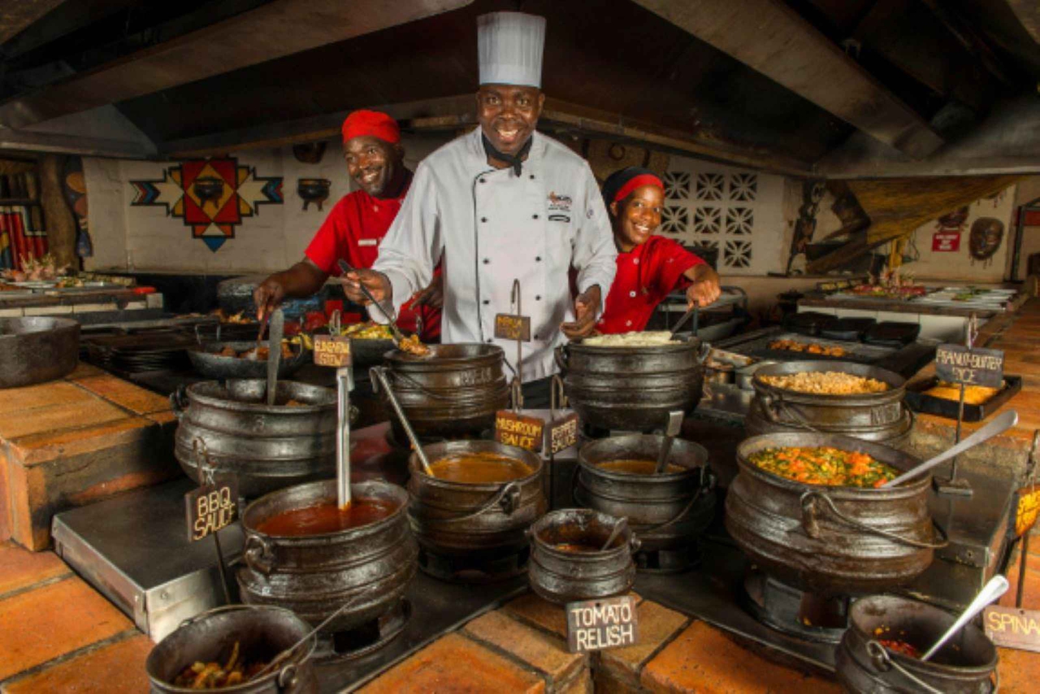 Terminez votre journée par un authentique dîner africain au Boma. Savourez une cuisine africaine fraîchement préparée, plongez dans des spectacles de musique et de danse traditionnelles, et participez à une séance de tambour exaltante.