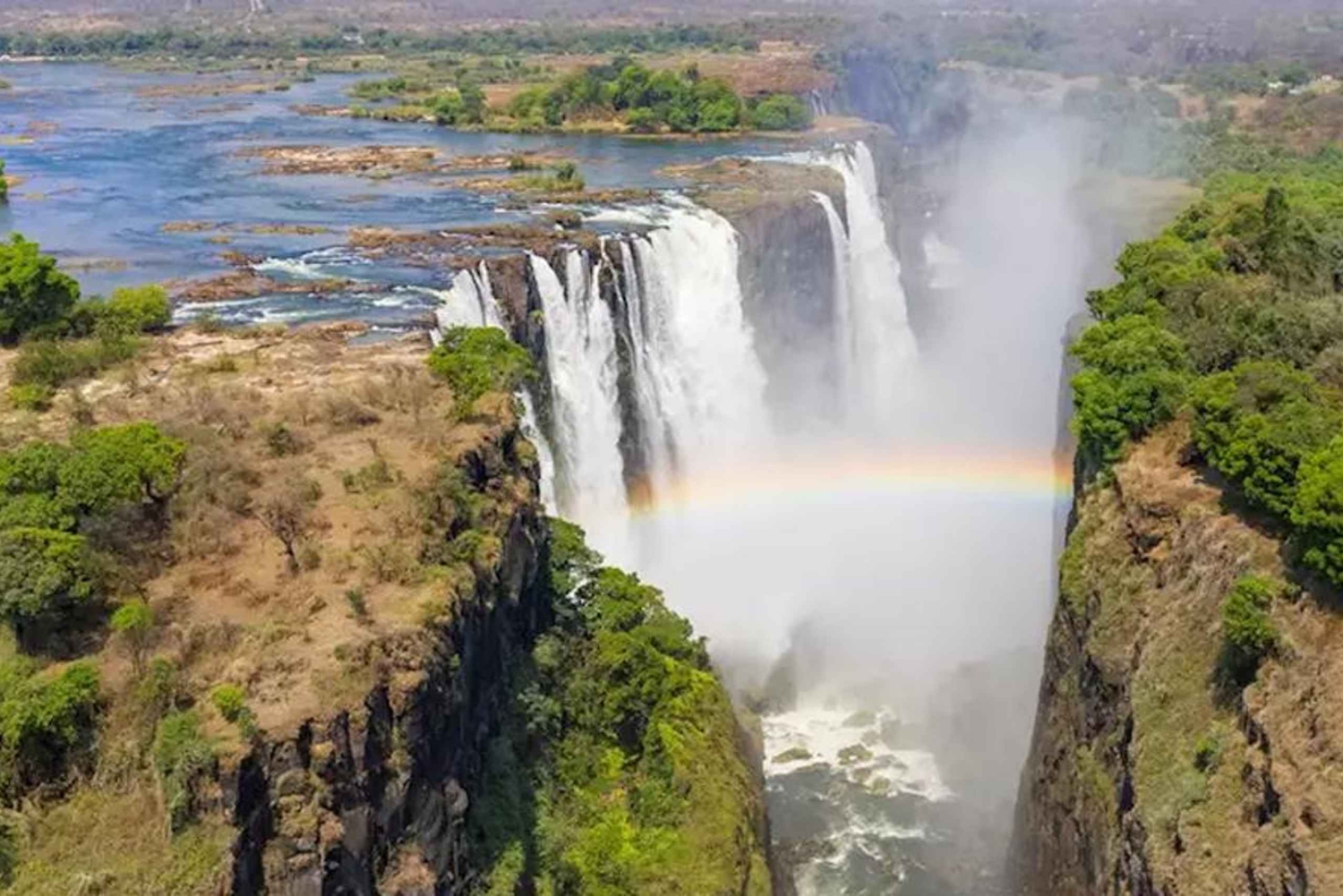 Survolez les chutes Victoria lors d'un vol en hélicoptère. Profitez d'une vue imprenable sur la cascade, le Zambèze et les paysages environnants.