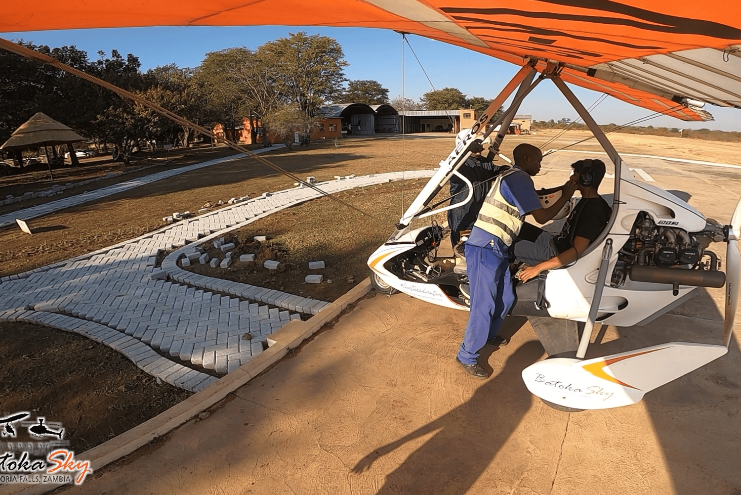 L'attività permette ai clienti di godere della vista aerea delle Cascate Vittoria e di osservare lo sgorgare dell'acqua delle Cascate Possenti dall'altezza di un angelo. Il volo attraverso il parco permette ai clienti di esplorare il parco in luoghi che il veicolo non potrebbe raggiungere. L'esplorazione combinata darà al cliente una soddisfazione totale. Inoltre, ogni momento viene ripreso in video, che viene messo a disposizione dei clienti con un piccolo supplemento. L'ultraleggero ha spazio solo per il pilota e per un cliente, per cui il cliente ha la possibilità di vivere un momento a tu per tu.