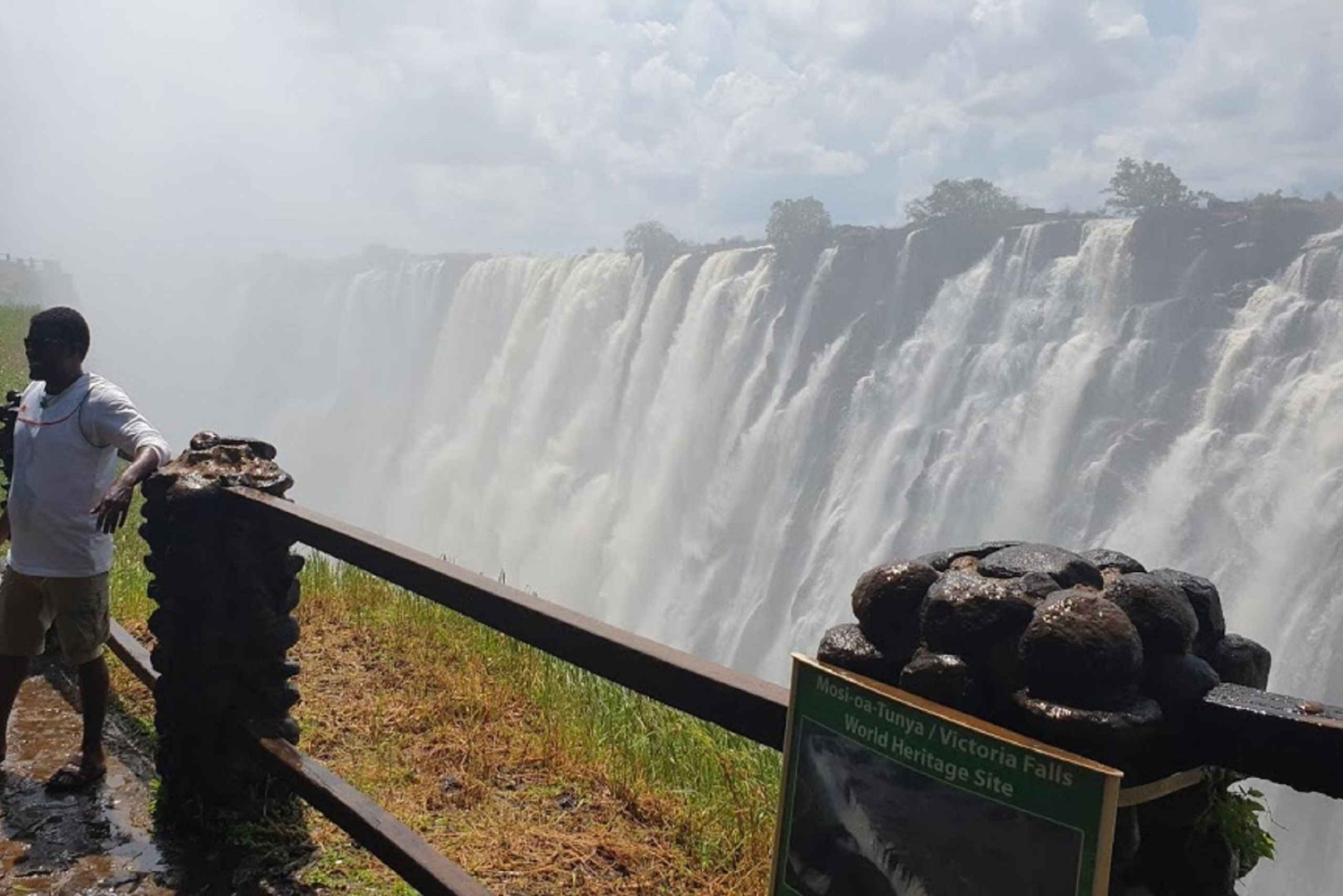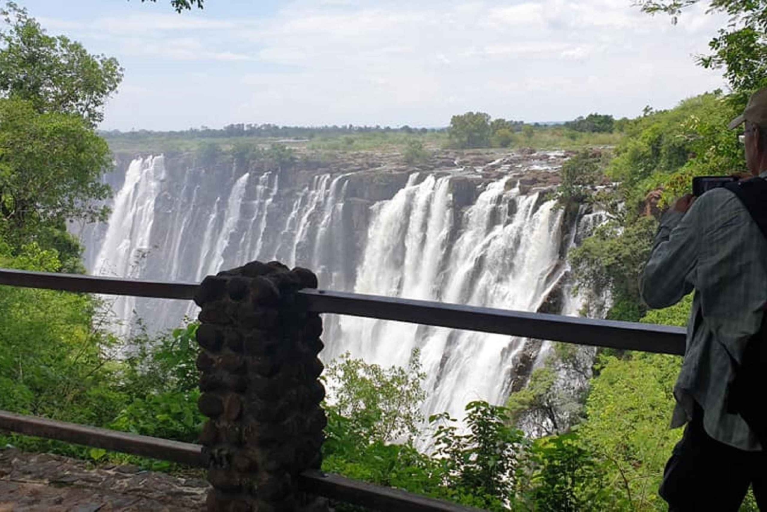 リビングストンにある宿泊施設までお迎えに上がり、滝のあるモシ・オア・トゥニャ国立公園まで車で向かいます。経験豊富なガイドの案内で、整備されたトレイルや、ナイフエッジブリッジ、ボイリングポット、レインボーフォールズなど、滝の息をのむような眺めを楽しめるビューポイントを探索します。