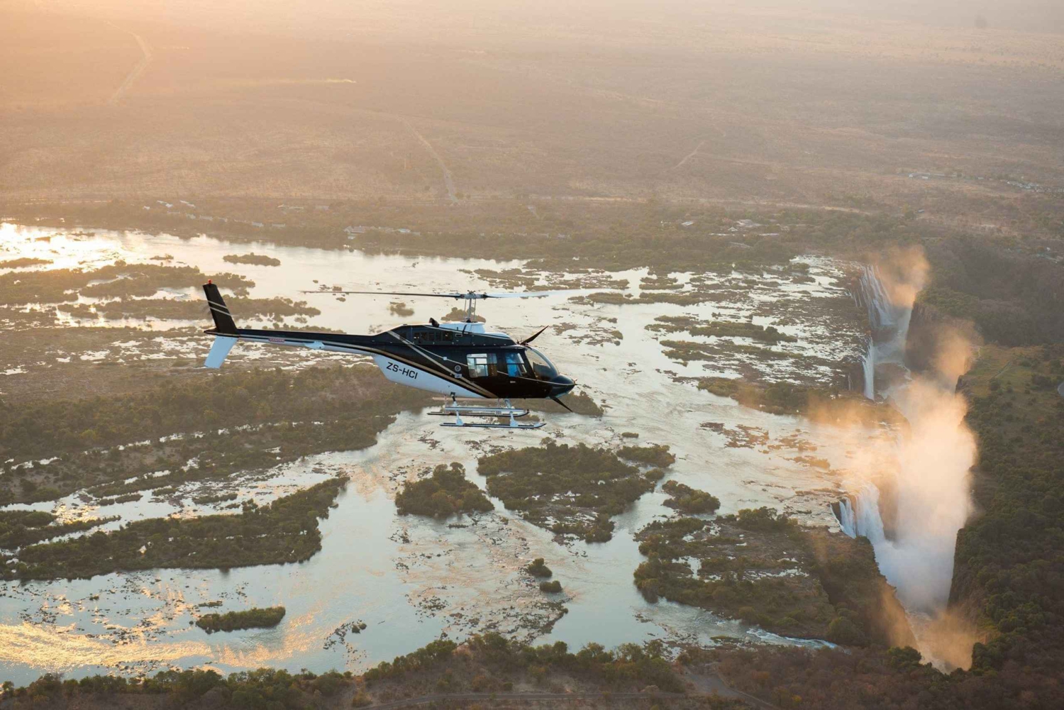 世界最大の滝、ビクトリア滝の探検にご参加ください。ヘリコプター ツアーで、これまでにないビクトリア滝の息を呑むような美しさをご体験ください。