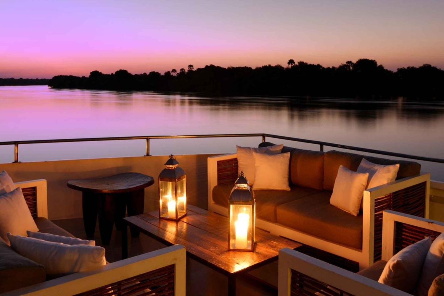 - Nyt et avslappende cruise på Zambezi-elven mens solen går ned