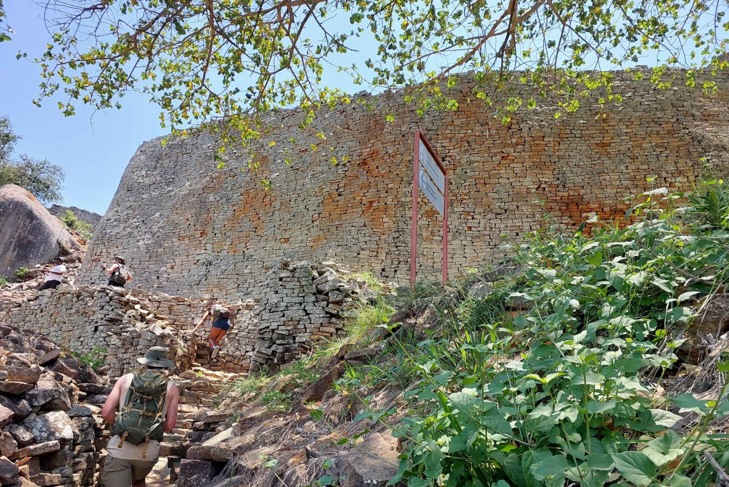 Pomnik Narodowy Great Zimbabwe znajduje się około 40 km od Masvingo i położony jest na nizinie na wysokości około 1100 m n.p.m. w słabo zaludnionym regionie ludu Bantu/Shona. Posiadłość, zbudowana między 1100 a 1450 r. n.e., rozciąga się na prawie 800 ha i jest podzielona na trzy grupy: Ruiny Wzgórza, Wielka Zagroda i Ruiny Doliny.