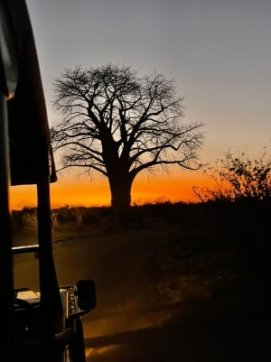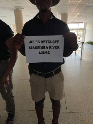 Nossa viagem começou no Aeroporto Doméstico de Harare, onde embarcamos no Voo Kuva Air para Victoria Falls. O voo durou aproximadamente 1h15, foi confortável e fomos servidos com um lanche leve acompanhado de uma bebida não alcoólica. Ao chegar ao aeroporto de Victoria Falls, fomos recebidos pela equipe do Sian Simba que tinha 3 veículos de safári abertos esperando para nos transportar para o lodge, que ficava aproximadamente 35km de Victoria Falls.