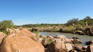 Vimos alguns babuÃnos, zebras e girafas e muitas impalas. Nos disseram que o melhor local para observação de aves na área era o pequeno barragem chamado Shorai, mas não fomos tão longe e ficamos satisfeitos em voltar para o lodge para ver o rio. O local da represa está aberto para os hóspedes pescarem na margem do rio. Não havia nenhum especialista por perto, mas era claro como os nÃveis de água caÃram ao longo dos anos e algumas mini ilhas rochosas surgiram, proporcionando um ótimo ponto de observação para ver o lodge, um local verdadeiramente bonito. Amamos o jardim bem aparado, a área para piquenique e churrasco com vista para a água, algumas espreguiçadeiras perto da piscina, era tudo muito encantador.