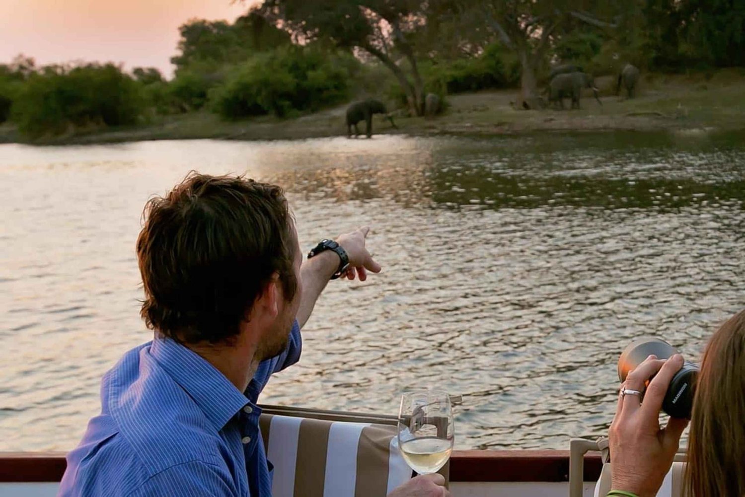 Den här turen börjar i Victoriafallen och tar dig till Chobe nationalpark i Botswana. Vid ankomsten till Kazungula-gränsen kommer en guide från Botswana att möta deltagarna för morgonens djurskådning på floden. Te, kaffe och kakor finns tillgängliga. Flodkryssningen avslutas kl. 12.30, då lunch serveras på ett hotell vid floden. Efter lunch är det dags för en eftermiddagssafari i Chobe nationalpark för att se djurlivet. Rundturen återvänder till Victoriafallen ungefär kl. 17.30. Aktivitetssekvensen kan ändras beroende på föregående natts observationer; till exempel börjar den med en speltur och slutar med en båtkryssning.